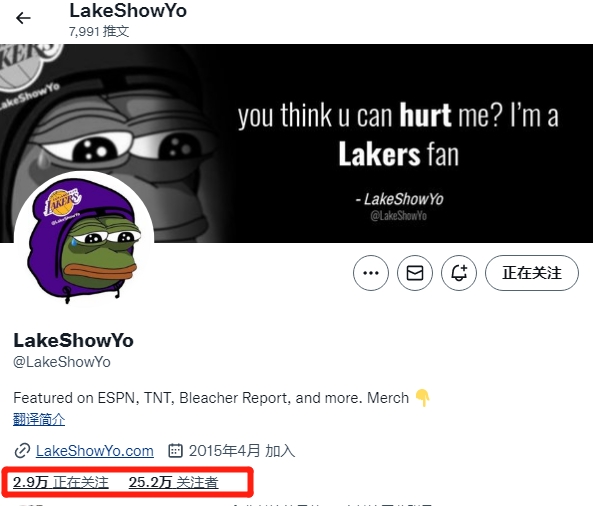 It is worth mentioning that LakeShowYo is the self-media with the largest number of fans in the self-media of the Lakers on Twitter, and has more than 252000 fans.