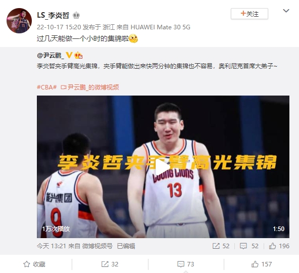 Li Yanzhe himself forwarded the video and replied: I can do an hour’s collection in a few days [please]