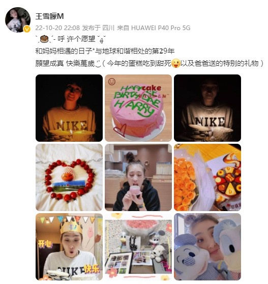 Wang xueyu dried out a group of beautiful photos and wrote:The 29th year when I met my mother, my wish came true, long live happiness ‘͜’ (this year’s cake is sweet and a special gift from dad).”
