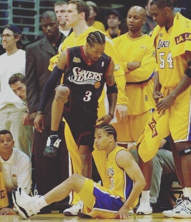 The most unforgettable picture of that game was Iverson who crossed the Taren-Lu who fell to the ground in the game after taking a jump shot in the last minute of overtime.