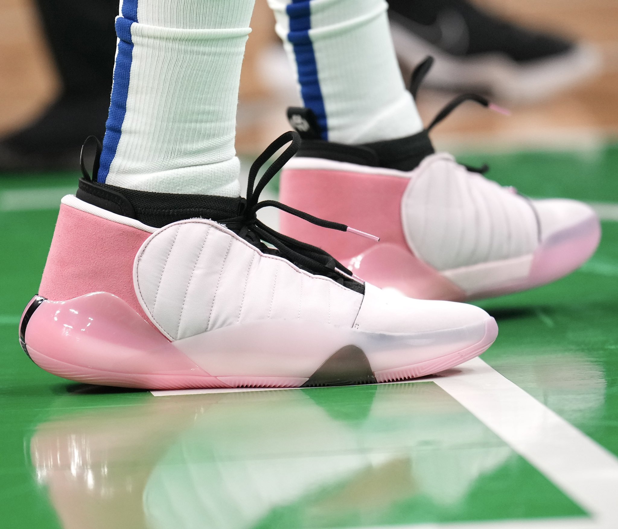In this game, the 76-player star James Harden is the seventh generation of Harden with new color matching. This pair of pink Harden 7 is quite eye-catching.